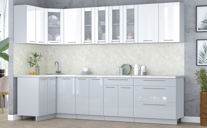 • Оттенок верхних фасадов белый глянец
