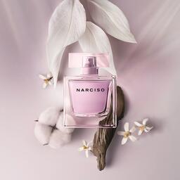 Верхние ноты гвоздики и цветков апельсина переплетаются с сердцем из белого ветивера и хлопка, а фирменный мускус Narciso гармонирует с абстрактными древесными нотами в шлейфе, создавая чувственное и успокаивающее звучание.