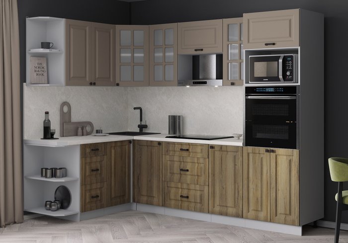 • Цвет нижних фасадов дерево с яркой текстурой