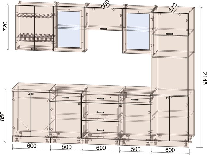 • Высота нижних шкафов 85 см