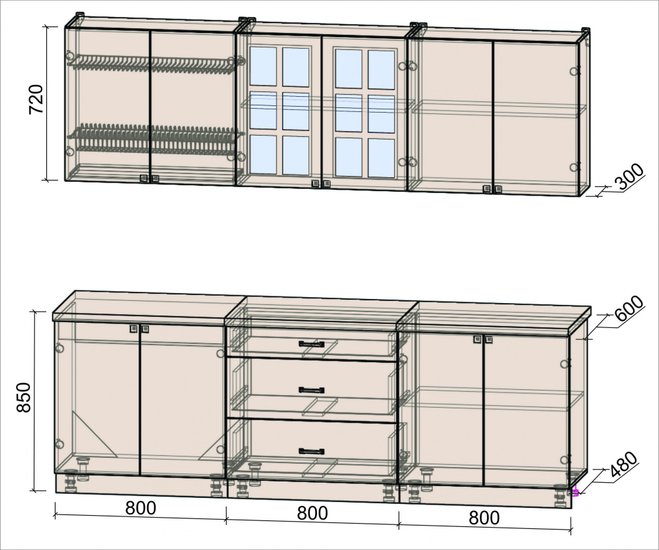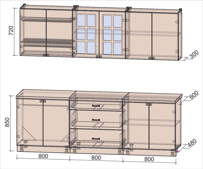 • Высота нижних шкафов 85 см
