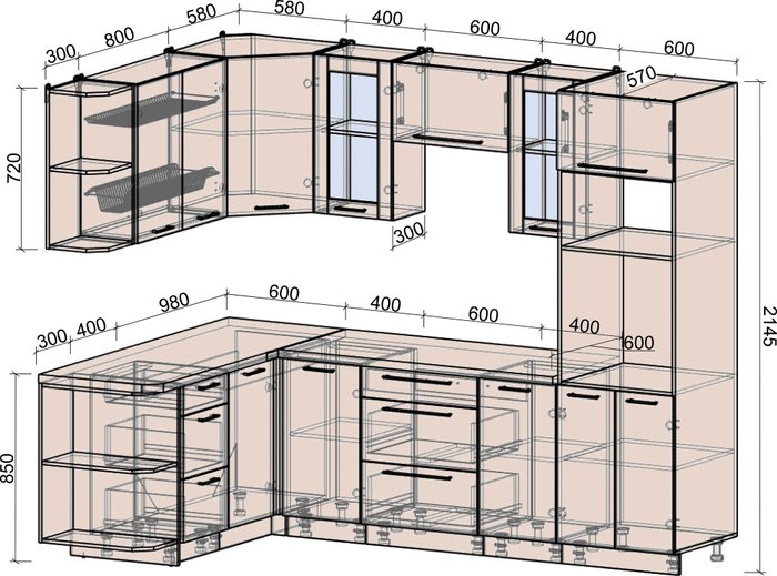 • Высота нижних шкафов 85 см