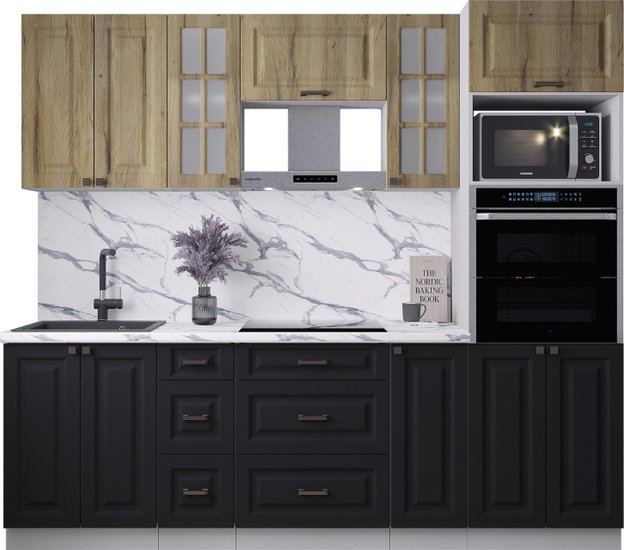 Мила Деко 2.4 (черный/дуб вотан/белый гранит)