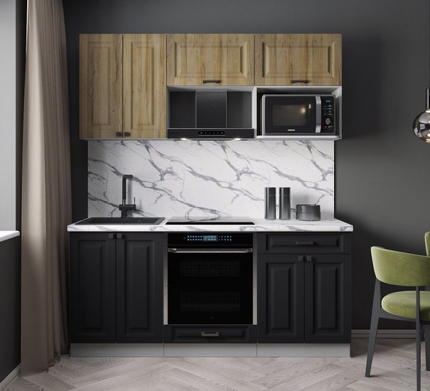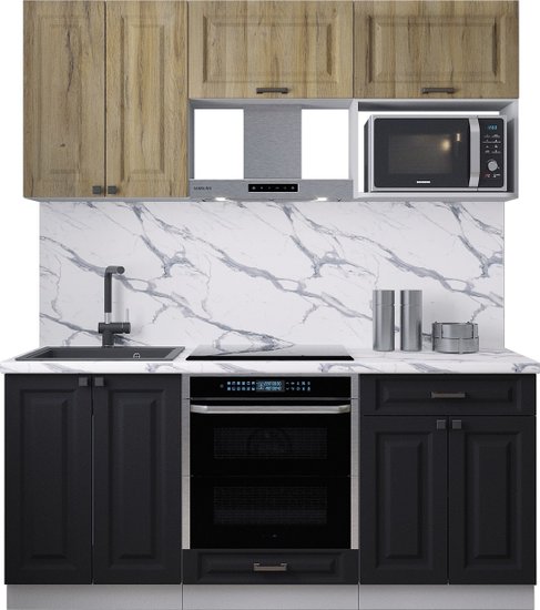 Мила Деко 1.8 (черный/дуб вотан/белый гранит)