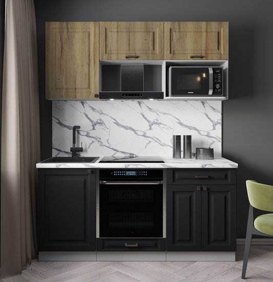 Мила Деко 1.7 (черный/дуб вотан/белый гранит)