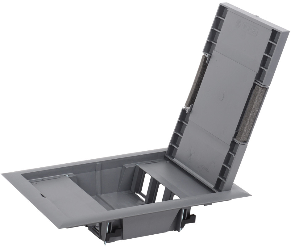 Лючок ONFLOOR предназначен для формирования посадочных мест под установку электроустановочных изделий с размером монтажного модуля 45х45 мм в монолитном бетоностроении.