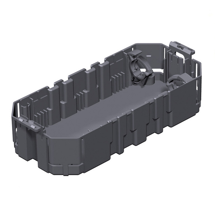 Монтажная коробка пустая, с 2 фиксаторами для разгрузки от натяжения входящих и исходящих проводов. Подходит для монтажа максимум 2 стандартных розеток или 3 устройств серии Modul-45® в накладках.