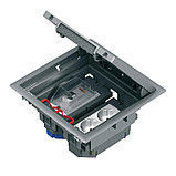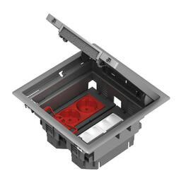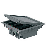 Напольный розеточный лючок включает монтажные суппорта для прямого защёлкивания модулей 45х45 и 45х90 изделий Altira. В комплект входит также пакет с одним держателем кабеля, двумя перегородками, шестью зажимами для кабеля. Крышка лючка может быть установлена в двух положениях и имеет место под напольное покрытие (толщина вкладываемого покрытия до 6 мм). Монтажные суппорта под розетки могут быть установлены на различной глубине от 70 до 100 мм с шагом 5 мм.