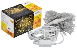 LIGHTING Гирлянда нить 10м 100 светодиодов теплый белый свет IP44 прозрачный шнур 3м 230В мерцание транзит IEK