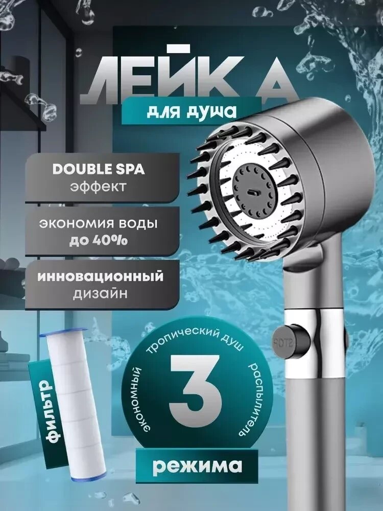 Лейка для душа турбо c фильтром / Турбо лейка массажная