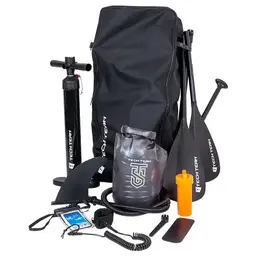 Дополнительная комплектациянасос (двойного действия с манометром), ремкомплект, рюкзак (для SUP доски и аксессуаров), лиш (страховочный трос), водонепроницаемый чехол для телефона, инструкция по эксплуатации, сиденье (с четырьмя креплениями), сумка (водонепроницаемый мешок объемом 10 л)