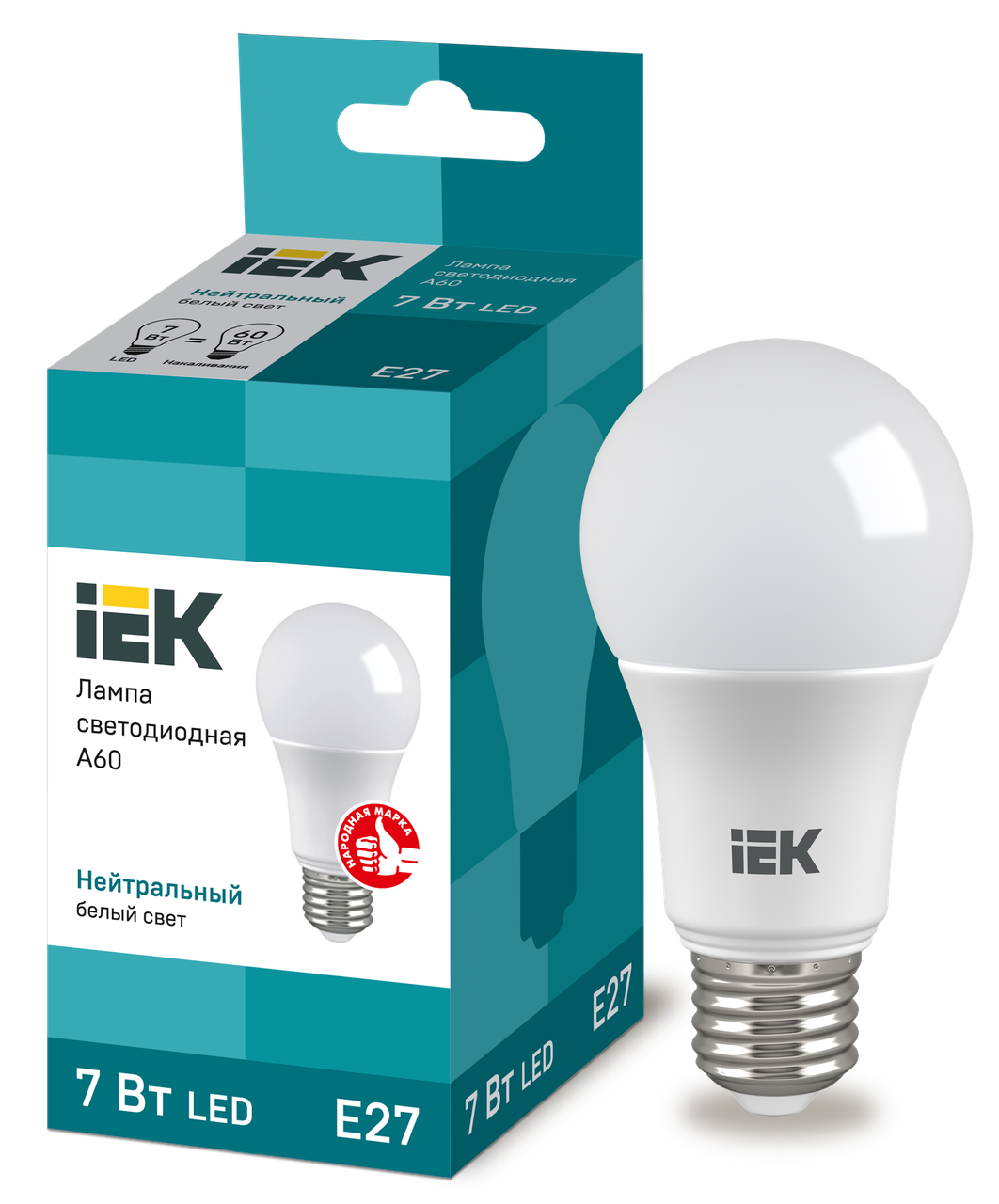 Лампа светодиодная ECO A60 шар 7Вт 230В 4000К E27 IEK