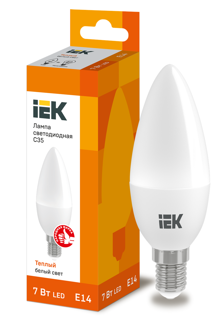 Лампа светодиодная ECO C35 свеча 7Вт 230В 3000К E14 IEK