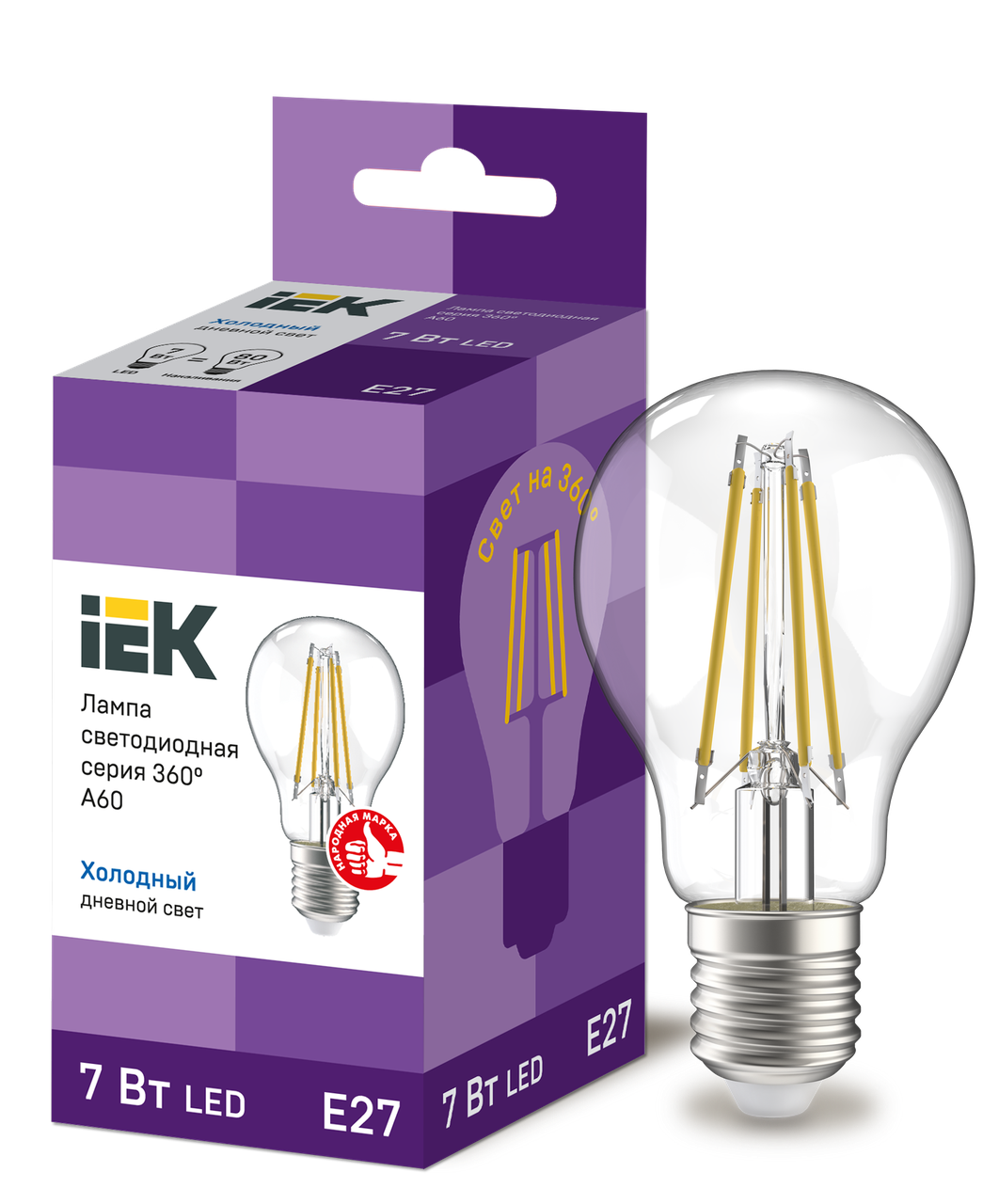 Лампа LED A60 шар прозр. 7Вт 230В 6500К E27 серия 360° IEK