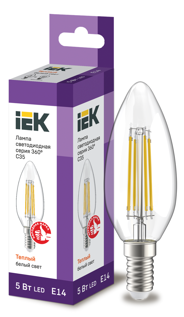 Лампа LED C35 свеча прозр. 5Вт 230В 3000К E14 серия 360° IEK