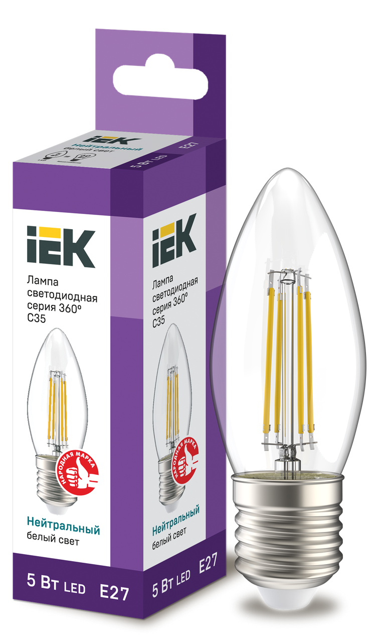 Лампа LED C35 свеча прозр. 5Вт 230В 4000К E27 серия 360° IEK