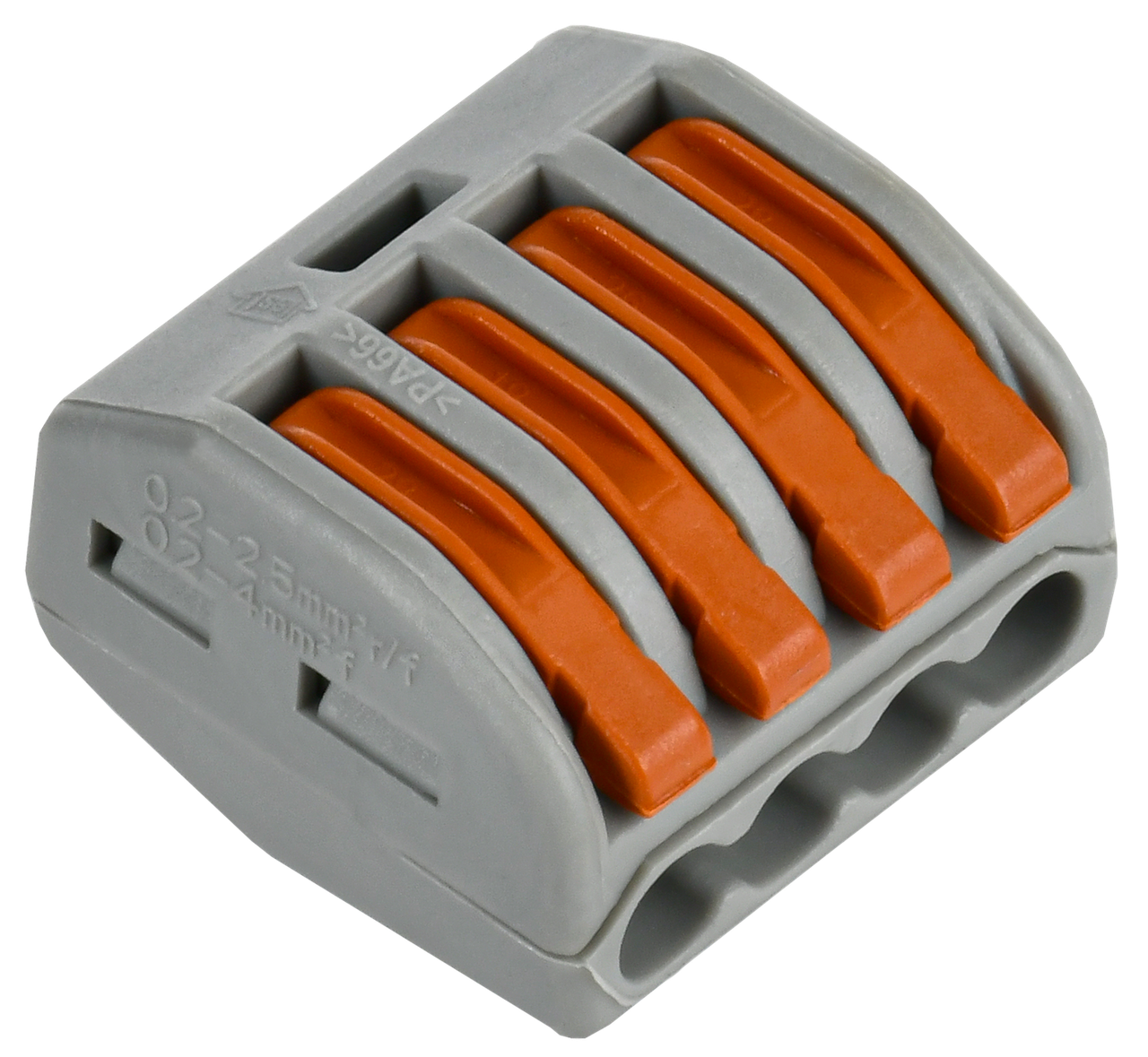 Клемма строительно-монтажная серии 222 предназначена для соединения одножильных и многожильных медных проводников без использования инструмента в электрических сетях переменного и постоянного тока. Клемма допускает многократное присоединение и отсоединение проводников. Количество подключаемых проводников - 4.