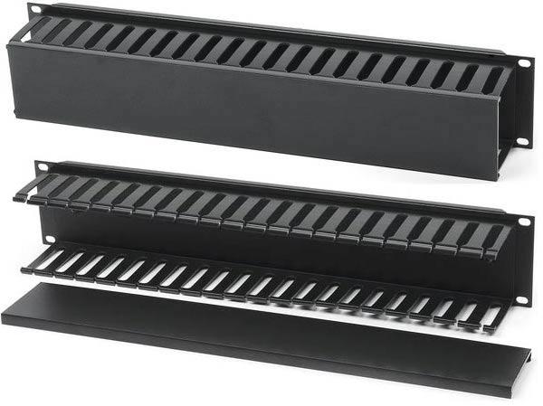 19-дюймовые кабельные организаторы ITK предназначены для горизонтальной организации кабеля и кабельных пучков в шкафах и стойках, обеспечивают их поддержку в пределах монтажной высоты фронтальной плоскости шкафа, гарантируют необходимый радиус изгиба коммутационных шнуров и кабеля при подведении их к оборудованию. При использовании кабельных организаторов существенно снижается вероятность появления сильных перегибов и изломов кабелей, повышается скорость и эффективность работы IT-специалистов и администраторов при обслуживании шкафов и стоек. Кабельные органайзеры устанавливаются на 19" монтажные профили, занимая при этом один или два юнита полезной высоты. Монтаж осуществляется с помощью крепежа винт-шайба-гайка. 19" кабельный органайзер имеет конструкцию закрытого типа с крышкой. Высота органайзеров: 1U или 2U. Материал: пластик. В комплект поставки входит органайзер и комплект крепежа.
