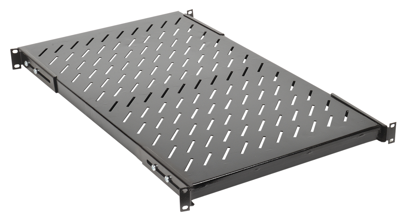 Полки для телекоммуникационных шкафов и стоек ITK предназначены для размещения на них различного оборудования, не имеющих специальных кронштейнов и мест крепления сразу на 19-дюймовые профили шкафа: от ИБП, KVM-консолей и телефонных аппаратов, заканчивая различными специализированными приборами и медицинским оборудованием. В зависимости от типа конструкции и исполнения полки бывают стационарными, выдвижными или консольными. Стационарные полки рассчитаны на тяжелое оборудование с постоянным статичным размещением, крепятся как на фронтальные, так и на задние профили, имеют перфорированную поверхность для обеспечения лучшего охлаждения и отведения теплых воздушных потоков. Ушки, с помощью которых полки крепятся к монтажным профилям, могут регулироваться спереди и сзади в пределах 50 мм, что позволяет увеличить глубину полки на 100 мм и упрощает ее установку внутри шкафа. В зависимости от величины статической нагрузки в ассортименте стационарных полок ITK представлены обычные стационарные и усиленные стационарные полки.