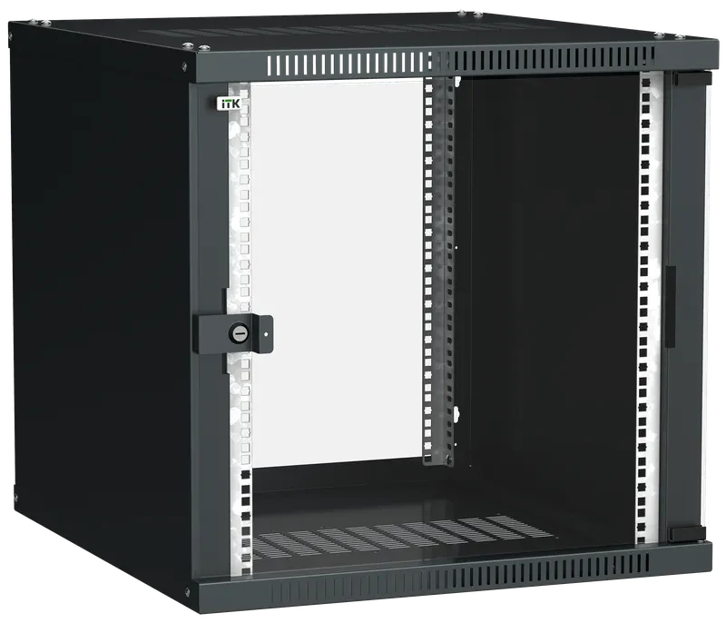 ITK Шкаф настенный LINEA WE 9U 600х600мм дверь стекло черный