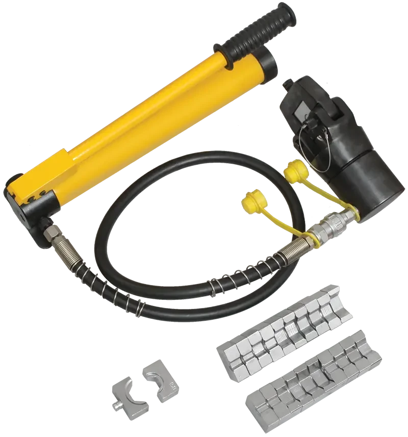 Гидравлические прессы позволяют создавать механические соединения типа кабельная жила-гильза или кабельная жила-наконечник с помощью механической опрессовки. Прессы снабжены сменными матрицами, предназначенными для различных сечений жил.