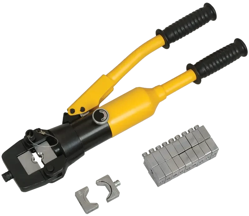 Гидравлические прессы позволяют создавать механические соединения типа кабельная жила-гильза или кабельная жила-наконечник с помощью механической опрессовки. Прессы снабжены сменными матрицами, предназначенными для различных сечений жил.