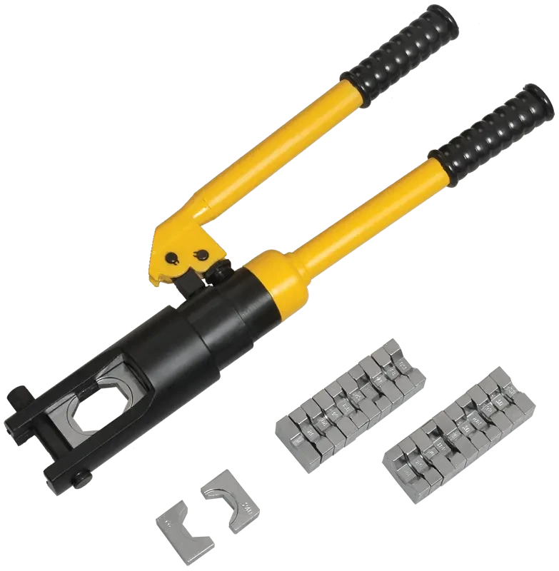 Гидравлические прессы позволяют создавать механические соединения типа кабельная жила-гильза или кабельная жила-наконечник с помощью механической опрессовки. Прессы снабжены сменными матрицами, предназначенными для различных сечений жил.