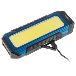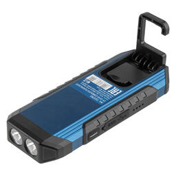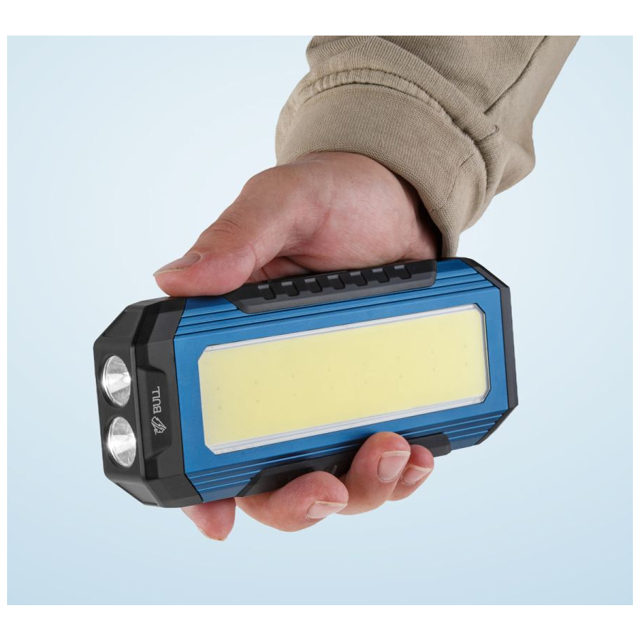 Модель обладает магнитами для крепления на металлической поверхности, а также крюком для подвешивания. Имеет несколько источников подачи света: фронтальный и боковой, а также 7 рабочих режимов. Модель может выступать в качестве портативного источника питания, что особенно актуально при нахождении вдали от внешних источников питания. Имеет встроенный аккумулятор и индикацию уровня заряда аккумулятора. Доступные режимы: яркий белый, 50% яркости, стробоскоп, красный цвет и др.