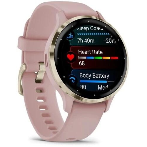 Спортивные часы Garmin Venu 3s оборудованы системой водного баланса, информирующей о необходимости выпить воды. При длительных занятиях физическими упражнениями приходит оповещение о необходимости в отдыхе. Данные отображаются на AMOLED-дисплее диагональю 1.2 дюйма. Зафиксировать аксессуар на запястье любого обхвата позволяет эластичный силиконовый ремешок.