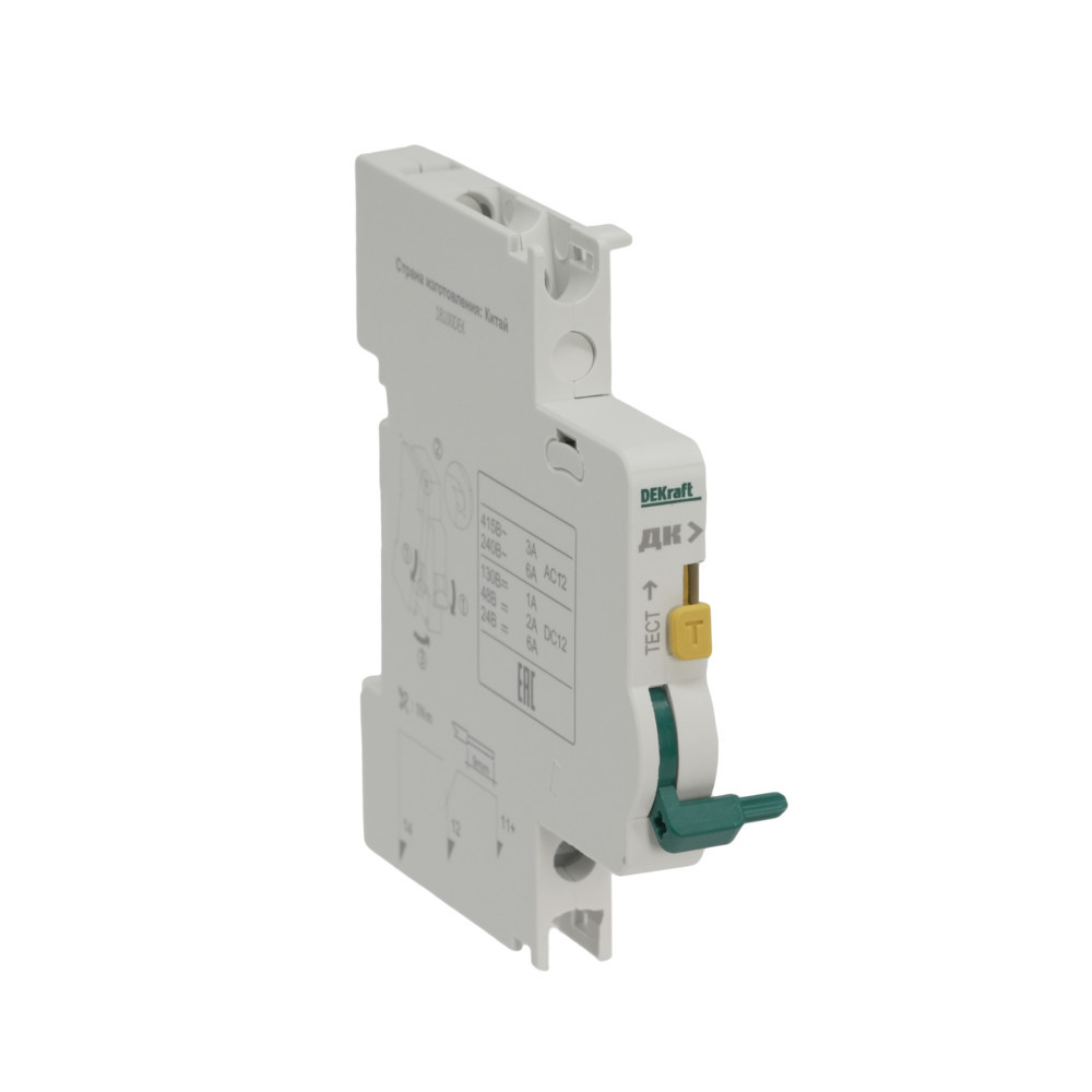 Контакт дополнительный ДК-101 длявтоматических выключателей серии ВА-101 Dekraft; предназначен для сигнализации состояния выключателя ВКЛ/ОТКЛ; тип контакта переключающий; ширина 9 мм; присоединение к выключателю слева.
