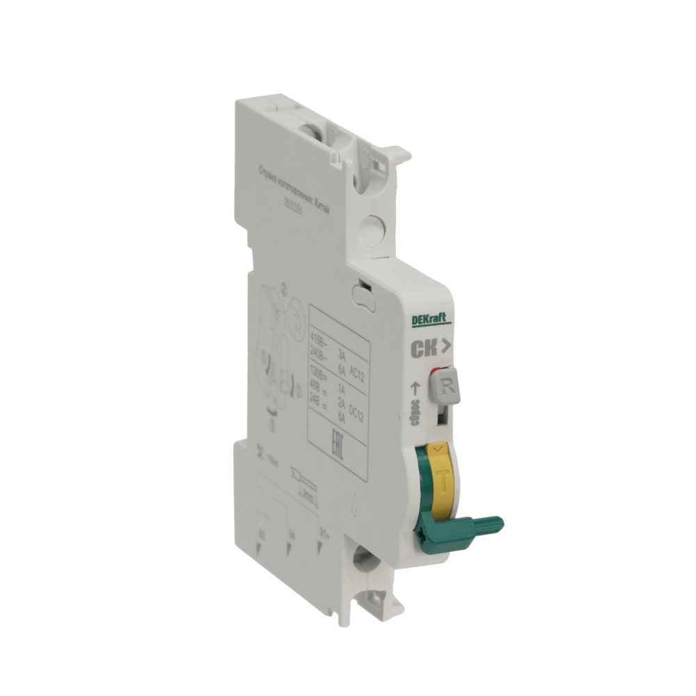 Контакт сигнальный СК-101 длявтоматических выключателей серии ВА-101 Dekraft; предназначен для сигнализацииварийного срабатывания выключателя; тип контакта переключающий; ширина 9 мм; присоединение к выключателю слева.