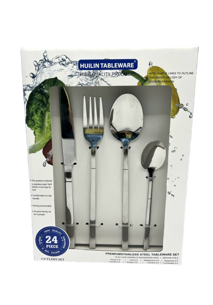 • Приборы в комплекте столовая вилка (6 шт.), столовая ложка (6 шт.), нож столовый (6 шт.), чайная ложка (6 шт.)