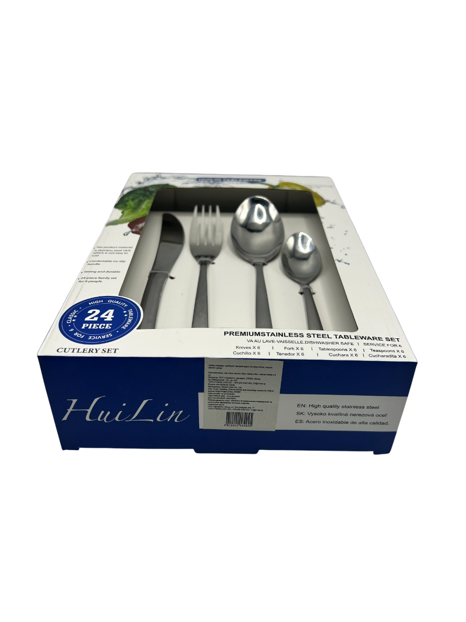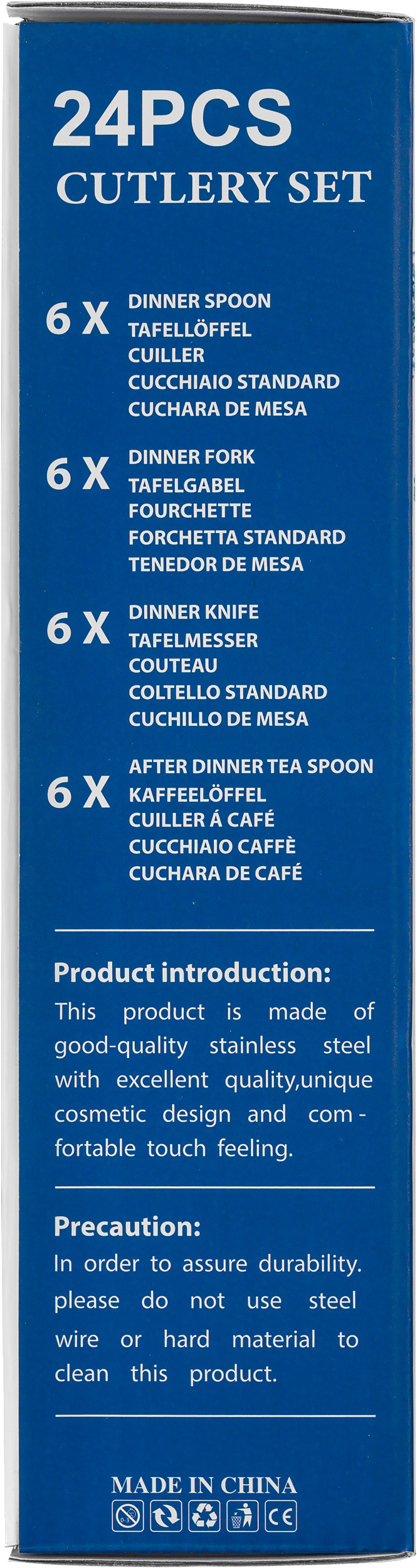 • Приборы в комплекте столовая вилка (6 шт.), столовая ложка (6 шт.), нож столовый (6 шт.), чайная ложка (6 шт.)