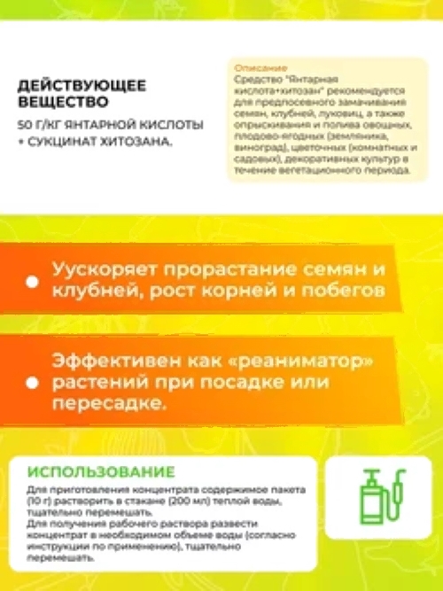 - Состав 50 г/кг янтарной кислоты + сукцинат хитозана
