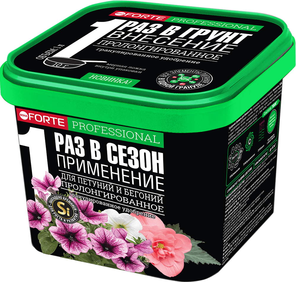 Удобрение Bona Forte Гранулир. пролонгир. д/петуний и бегоний с биодоступным кремнием (1л)