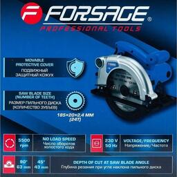 ✅ Продуманная конструкция дисковой пилы FORSAGE F-7185 обеспечивает высокую производительность и точность при работе с древесиной. Мощный двигатель и эффективная система пылеудаления гарантируют чистоту рабочего пространства и аккуратность распила. Оснащенная качественным 185-мм диском с 24 твердосплавными зубьями, эта пила легко справляется с различными породами древесины, а удобная регулировка углов реза позволяет получать ровные и точные пропилы.✅ Универсальность этой циркулярной пилы делает её идеальным инструментом для выполнения длинных прямых резов как в древесине, так и в пластике. С её помощью можно легко подрезать деревянные листы, кухонные столешницы, двери и подоконники. Мощный двигатель обеспечивает максимальную глубину резания до 65 мм под углом 90 градусов и 43 мм под углом 45 градусов, что открывает широкие возможности для выполнения различных задач.⚠️ Высокоскоростное вращение диска со скоростью 5500 об/мин позволяет быстро и точно выполнять резы, экономя ваше время и усилия. Эта дисковая пила станет незаменимым помощником в ваших проектах по обработке древесины и обеспечит отличные результаты.✅ Продуманная конструкция дисковой пилы FORSAGE F-7185 обеспечивает высокую производительность и точность при работе с древесиной. Мощный двигатель и эффективная система пылеудаления гарантируют чистоту рабочего пространства и аккуратность распила. Оснащенная качественным 185-мм диском с 24 твердосплавными зубьями, эта пила легко справляется с различными породами древесины, а удобная регулировка углов реза позволяет получать ровные и точные пропилы.✅ Универсальность этой циркулярной пилы делает её идеальным инструментом для выполнения длинных прямых резов как в древесине, так и в пластике. С её помощью можно легко подрезать деревянные листы, кухонные столешницы, двери и подоконники. Мощный двигатель обеспечивает максимальную глубину резания до 65 мм под углом 90 градусов и 43 мм под углом 45 градусов, что открывает широкие возможности для выполнения различных задач.⚠️ Высокоскоростное вращение диска со скоростью 5500 об/мин позволяет быстро и точно выполнять резы, экономя ваше время и усилия. Эта дисковая пила станет незаменимым помощником в ваших проектах по обработке древесины и обеспечит отличные результаты.