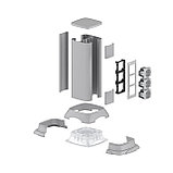 Колонна высотой 0,35 м. Назначение: организация рабочих мест вдали от стен. Условия монтажа: колонна крепится к полу в 4 точках; подвод кабелей с помощью гофрированных труб или в напольном кабель-канале ДКС; колонны рекомендуется заземлять; монтаж ЭУИ осуществляется при помощи каркасов и рамок, которые используются в коробах "In-liner Aero", "In-liner Front". Варианты наполнения колонны электроустановочными изделиями: установить 1 рамку на 6 модулей + 1 рамку на 2 модуля = итого по 8 модулей с каждой стороны колонны = итого 16 модулей; установить 2 рамки на 4 модуля каждая = итого по 8 модулей с каждой стороны колонны = итого 16 модулей; установить 3 рамки на 2 модуля каждая = итого по 6 модулей с каждой стороны колонны = итого 12 модулей. Характеристики: материал стойки и крышек – алюминий; материал прочих комплектующих – сталь, полипропилен, АБС-пластик; отсеки колонны можно разделить по всей длине на 2 или 3 части при помощи пластикового разделителя (код 01415); можно установить ЭУИ серии "Avanti", "Viva" и 45х45 мм с помощью каркасов и рамок; ЭУИ монтируются с 2-х сторон; максимально возможно поставить 8 модулей ЭУИ с каждой стороны – итого 16 модулей. Комплектация: стойка колонны алюминиевая – 1 шт.; крышка колонны алюминиевая – 2 шт.; заглушка торцевая верхняя пластик – 1 шт.; база на пол металлическая – 1 шт.; накладка лицевая на базу пластик. – 1 шт.; накладка внутренняя на базу плас. – 2 шт.; винт – 4 шт. инструкция по монтажу. Цвет: темно-серебристый RAL 9006