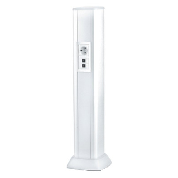 Алюминиевая колонна комплектуется двумя крышками, электроустановочные изделия можноустанавливать с 2-х противоположных сторон по всей длине колонны. Максимально возможноеколичество электроустановочных изделий – 20 модулей с каждой стороны колонны (при условиииспользования трех шестимодульных рамок и одной двухмодульной). Электроустановочныеизделия монтируются в колонну при помощи таких же каркасов и рамок, что используютсяв алюминиевых кабель-каналах и пластиковых кабель-каналах ""In-Liner FRONT"". Подвод электропроводки к колонне может осуществляться как из под пола, так и в напольном каналеCSP-F.
