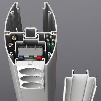 Миниколонна ISM20212 выполнена из анодированного алюминия , имеет высоту 430 мм , имеет 2 стороны установки розеток ( с каждой по 6 постов) , в комплекте кабельные зажимы и провода заземления.