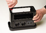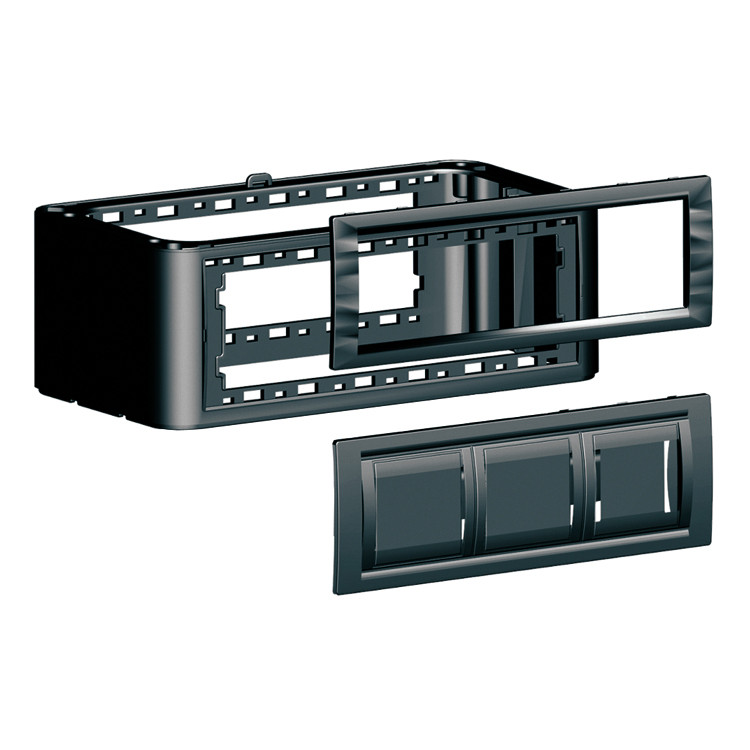 При совместной установке каркасов с розетками одной серии они сцепляются, если серии разные (например, "Brava" + "Viva" + "45х45"), то каркасы не сцепляются, а соприкасаются. Поверх каркасов устанавливается шестимодульная рамка (поставляется в комплекте с башенкой).