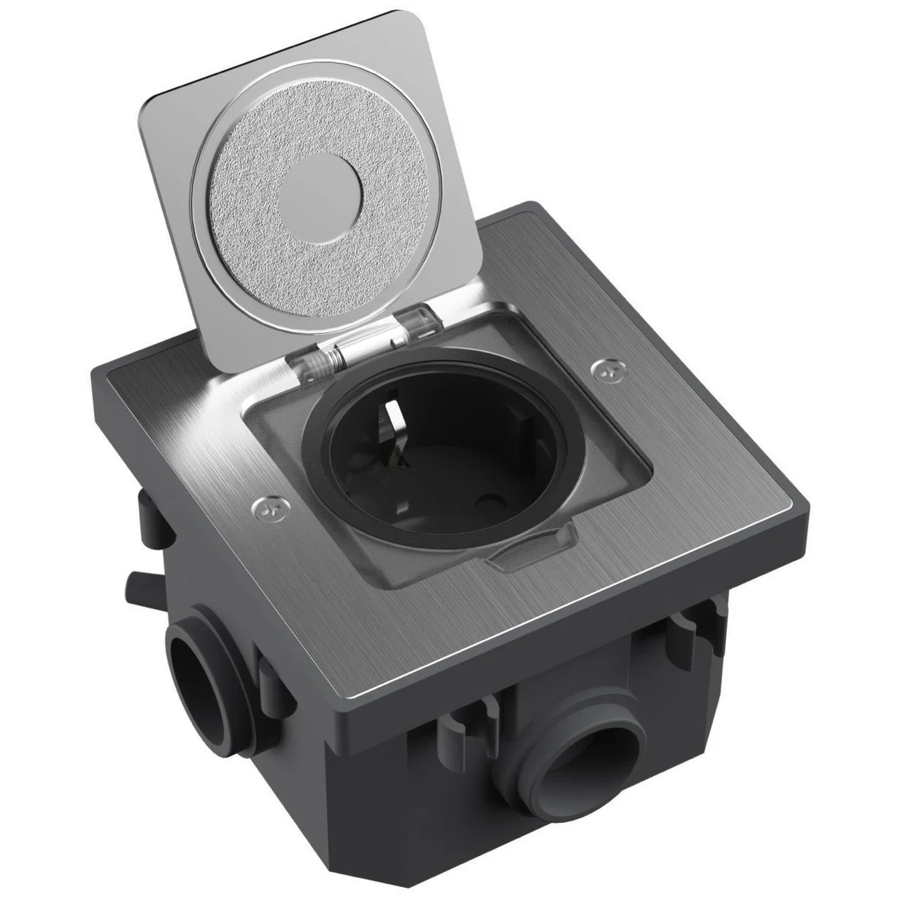 Shelbi Напольный/настенный лючок 1 розетка 220В, IP44, серебристый металлик