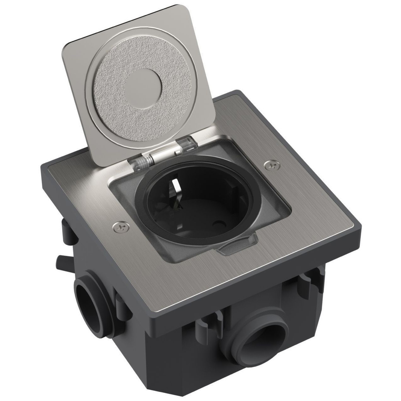 Shelbi Напольный/настенный лючок 1 розетка 220В, IP44, матовый никель