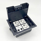 Назначение: Напольный лючок предназначен для установки в полу и позволяет организовать подключение различных электрических и слаботочных устройств. Удобен для офисных и жилых помещений, где требуется скрытое подключение кабелей и розеток.