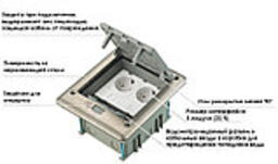 Предназначен для подключения питания и передачи данных в бетонных полах. Подходит для установки в помещениях с интенсивным движением, а также для использования в суровых условиях — как внутри, так и снаружи зданий.