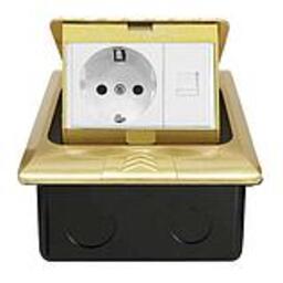 Встраиваемый напольный, настольный лючок под розетки. К нему подводятся электропровода для коммутации.