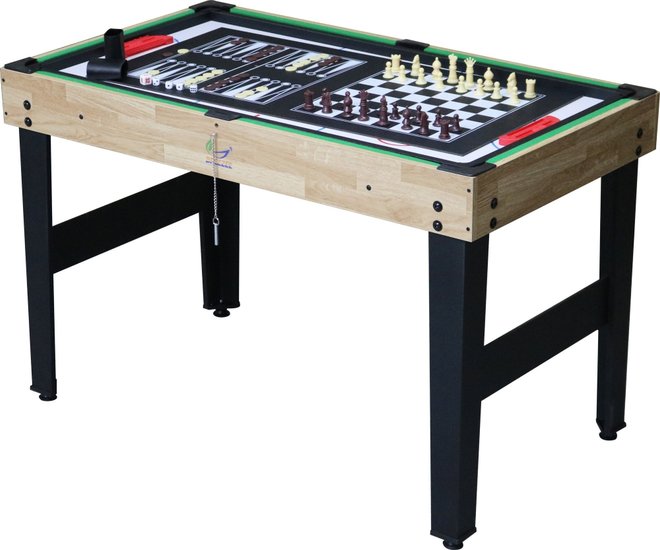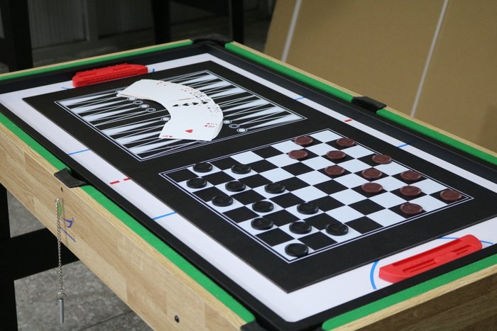 Комплектацияракетка (2 шт), мяч (для футбола, для тенниса), игральные кости, карты игральные, кий (2 шт.), треугольник, мел, бильярдный шар (16 шт.), бита (2 шт.), шайба (2 шт.), кегля (10 шт.), шашки, шар (для боулинга), фишка (для нард), шахматные фигуры