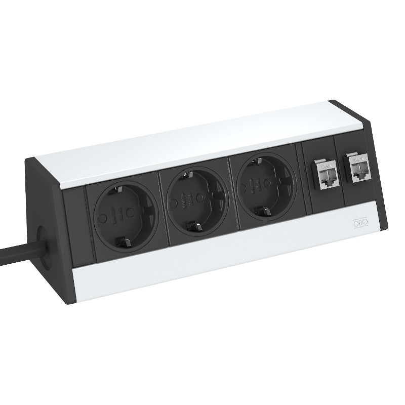 Настольный бокс DB для мобильной установки, с 3 розетками и 2 разъемами RJ45 CAT 6