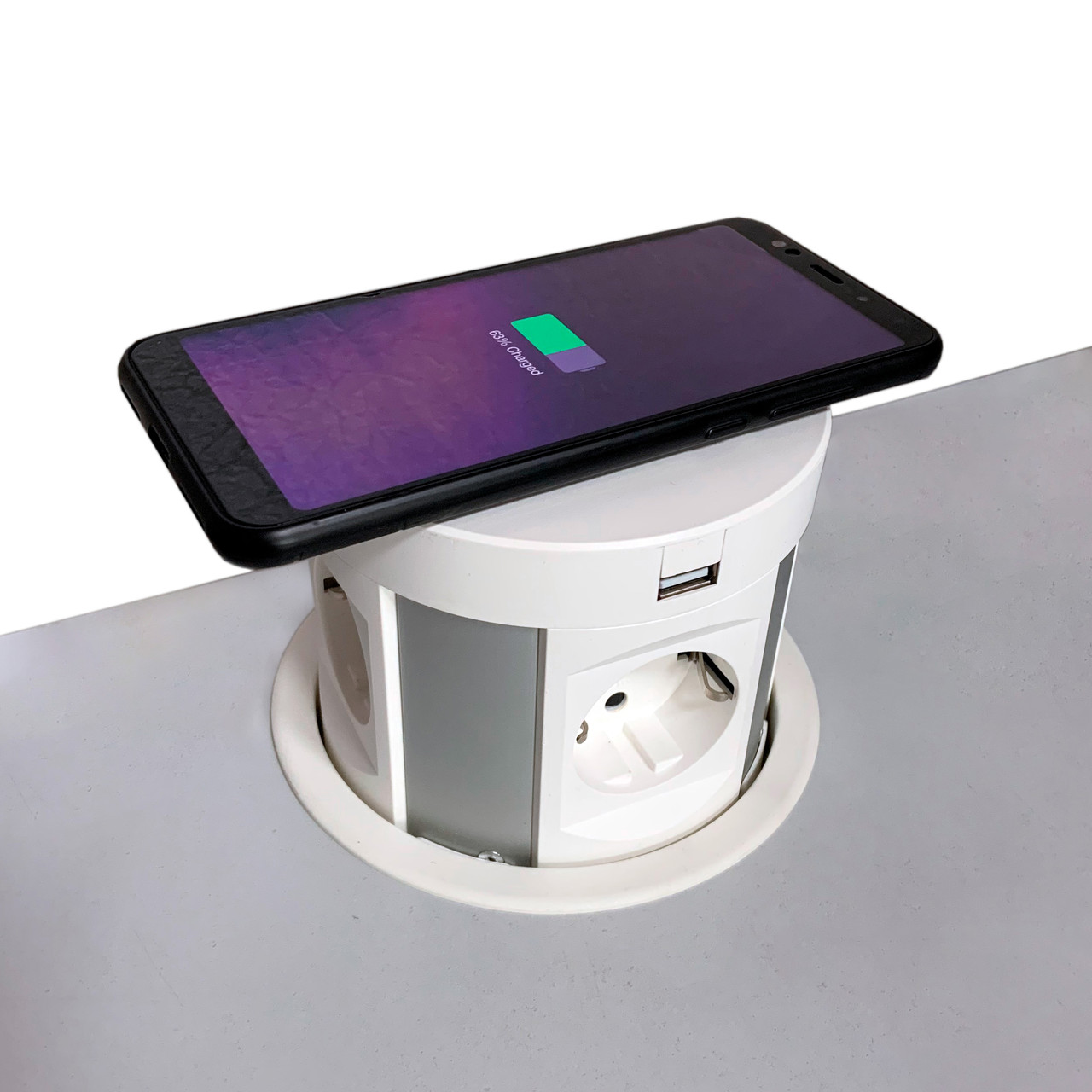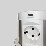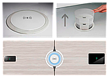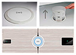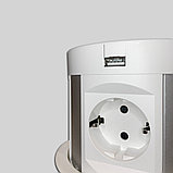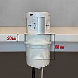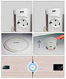 Вертикальный настольный выдвижной розеточный блок с соединительным кабелем и плавным открыванием, для фиксированного монтажа в столешнице, со встроенной беспроводной зарядкой .
