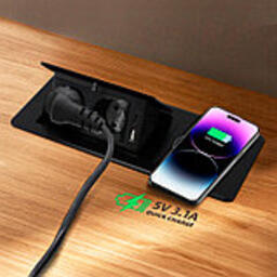 Превратите своё рабочее пространство в зону удобства и высокой технологичности с настольным боксом STGW Shelbi. Этот инновационный аксессуар, предназначенный для встраивания в столы, столешницы и другую мебель, обеспечивает быструю и эффективную зарядку ваших телефонов и гаджетов с мощностью 15W без необходимости использования проводов.