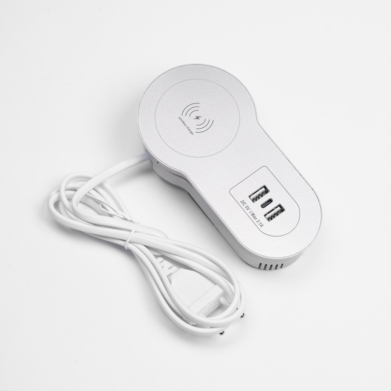 Shelbi STS-2U1C-S Настольный встраиваемый бокс 2 USB, 1 Type-C, беспроводная зарядка, шнур 1,5 м., серебро
